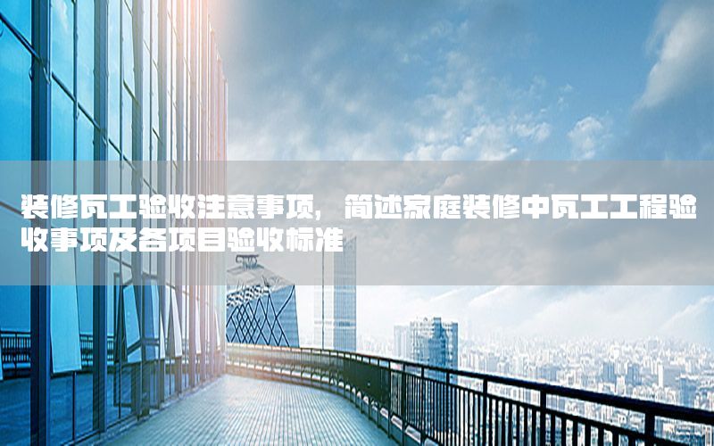 本篇文章給大家談?wù)勓b修瓦工驗(yàn)收注意事項(xiàng),以及簡(jiǎn)述家庭裝修中瓦工工程驗(yàn)收事項(xiàng)及各項(xiàng)目驗(yàn)收標(biāo)準(zhǔn)對(duì)應(yīng)的知識(shí)點(diǎn),希望對(duì)各位有所幫助,不要忘了收***本站喔。 今天給各位分享裝修瓦工驗(yàn)收注意事項(xiàng)的知識(shí),其中也會(huì)對(duì)簡(jiǎn)述家庭裝修中瓦工工程驗(yàn)收事項(xiàng)及各項(xiàng)目驗(yàn)收標(biāo)準(zhǔn)進(jìn)行解釋,如果能碰巧解決***現(xiàn)在面臨的問(wèn)題,別忘了關(guān)注本站,現(xiàn)在開始吧!