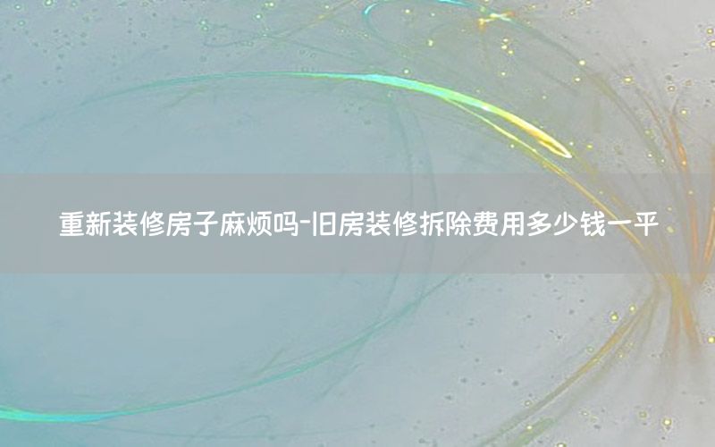 舊房重新裝修麻煩與否,要看個人需求:投資多,要求高,就麻煩;投資少,要求低,不會很麻煩。