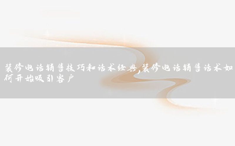 本篇文章給大家談?wù)勓b修電話銷售技巧和話術(shù)經(jīng)典,以及裝修電話銷售話術(shù)如何開始吸引客戶對應(yīng)的知識點,希望對各位有所幫助,不要忘了收***本站喔。 今天給各位分享裝修電話銷售技巧和話術(shù)經(jīng)典的知識,其中也會對裝修電話銷售話術(shù)如何開始吸引客戶進行解釋,如果能碰巧解決***現(xiàn)在面臨的問題,別忘了關(guān)注本站,現(xiàn)在開始吧!