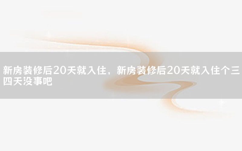本篇文章給大家談?wù)勑路垦b修后20天就入住,以及新房裝修后20天就入住個(gè)三四天沒(méi)事吧對(duì)應(yīng)的知識(shí)點(diǎn),希望對(duì)各位有所幫助,不要忘了收***本站喔。 今天給各位分享新房裝修后20天就入住的知識(shí),其中也會(huì)對(duì)新房裝修后20天就入住個(gè)三四天沒(méi)事吧進(jìn)行解釋,如果能碰巧解決***現(xiàn)在面臨的問(wèn)題,別忘了關(guān)注本站,現(xiàn)在開(kāi)始吧!