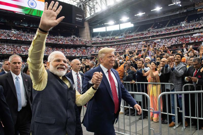 圖:印度總理莫迪(左)與美國(guó)總統(tǒng)特朗普一同參加22日“莫迪***好”活動(dòng)/ 網(wǎng)絡(luò)圖片