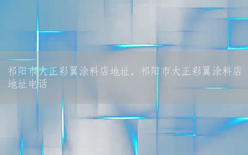 大家好,今天小編關(guān)注到一個(gè)比較有意思的話題,就是關(guān)于祁陽市大正彩翼涂料店地址的問題,于是小編就整理了5個(gè)相關(guān)介紹祁陽市大正彩翼涂料店地址的解答,讓我們一起看看吧。