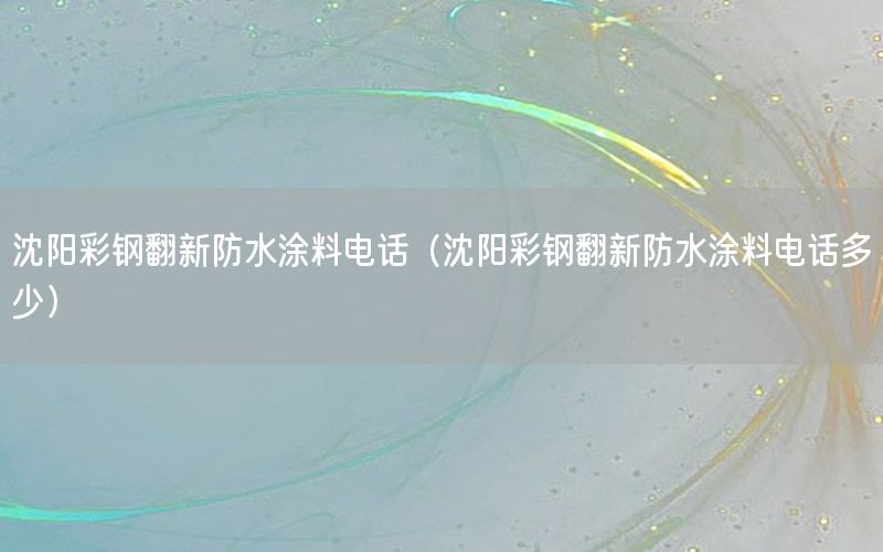 本篇文章給大家談?wù)勆蜿柌输摲路浪苛想娫?,以及沈陽彩鋼翻新防水涂料電話多少對?yīng)的知識點,希望對各位有所幫助,不要忘了收***本站喔。 今天給各位分享沈陽彩鋼翻新防水涂料電話的知識,其中也會對沈陽彩鋼翻新防水涂料電話多少進行解釋,如果能碰巧解決***現(xiàn)在面臨的問題,別忘了關(guān)注本站,現(xiàn)在開始吧!