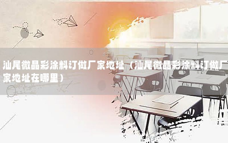 大家好,今天小編關(guān)注到一個(gè)比較有意思的話題,就是關(guān)于汕尾微晶彩涂料訂做廠家地址的問(wèn)題,于是小編就整理了5個(gè)相關(guān)介紹汕尾微晶彩涂料訂做廠家地址的解答,讓我們一起看看吧。