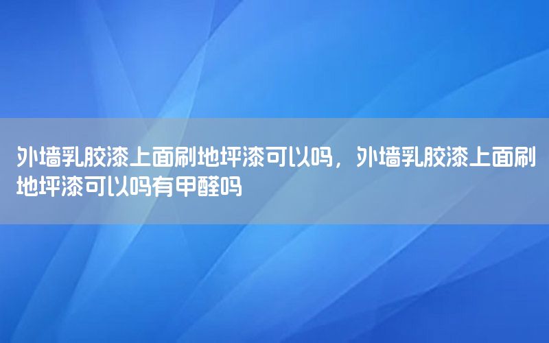 大家好,今天小編關(guān)注到一個(gè)比較有意思的話題,就是關(guān)于外墻乳膠漆上面刷地坪漆可以嗎的問題,于是小編就整理了5個(gè)相關(guān)介紹外墻乳膠漆上面刷地坪漆可以嗎的解答,讓我們一起看看吧。