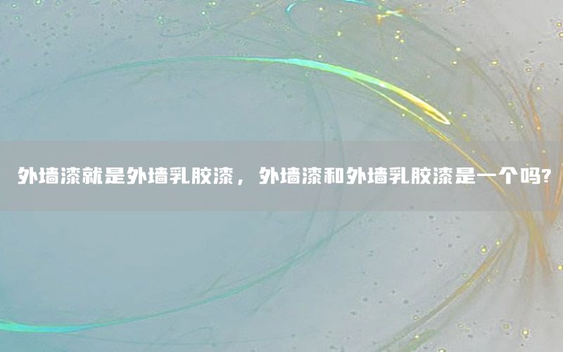 大家好,今天小編關(guān)注到一個(gè)比較有意思的話題,就是關(guān)于外墻漆就是外墻乳膠漆的問題,于是小編就整理了3個(gè)相關(guān)介紹外墻漆就是外墻乳膠漆的解答,讓我們一起看看吧。