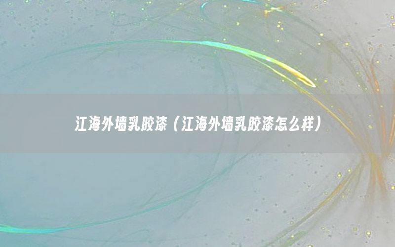 到此,以上就是小編對于江海外墻乳膠漆的問題就介紹到這了,希望介紹關(guān)于江海外墻乳膠漆的3點(diǎn)解答對大家有用。