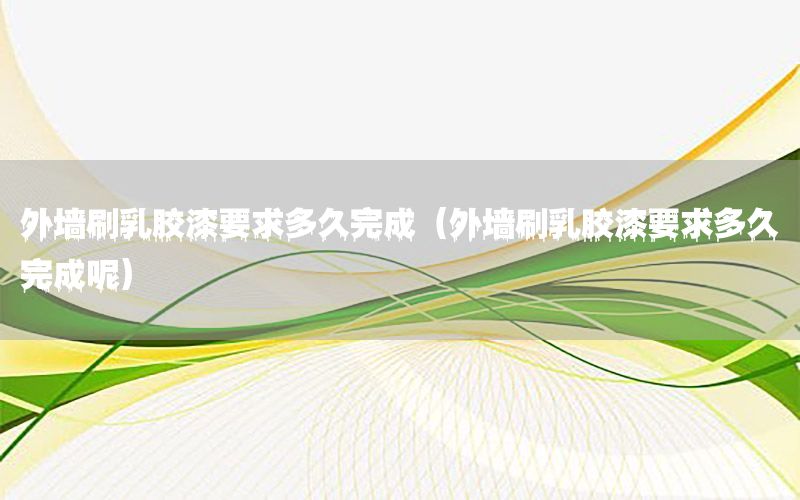 大家好,今天小編關(guān)注到一個(gè)比較有意思的話題,就是關(guān)于外墻刷乳膠漆要求多久完成的問(wèn)題,于是小編就整理了4個(gè)相關(guān)介紹外墻刷乳膠漆要求多久完成的解答,讓我們一起看看吧。