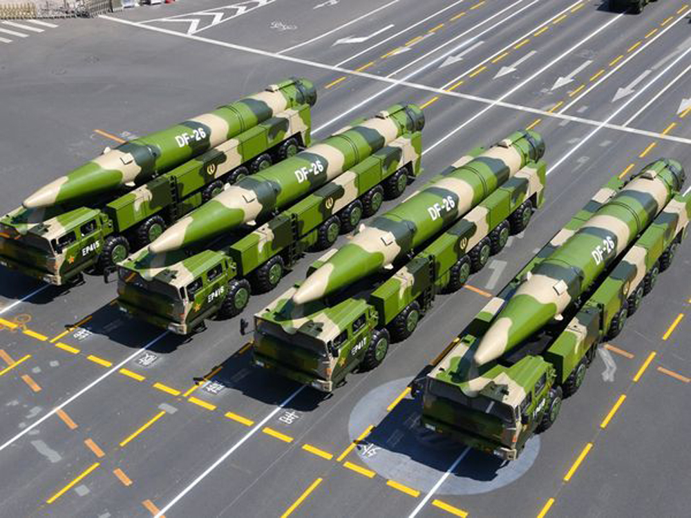 圖:4月底,國防部對外證實,“航母殺手”東風26導彈正式列裝火箭軍某旅\網(wǎng)絡圖片